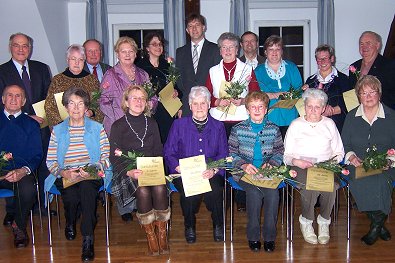 Groß war die Zahl der ehrenamtlichen Mitarbeiter, die vom Chef OB M. Gerlach für fünf- bis 25-jährige Mitarbeit geehrt werden