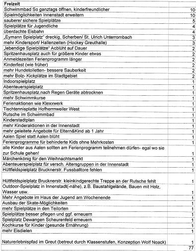 sich die Menschen in Aalen mehr Kinderfreundlichkeit wünschen. In den