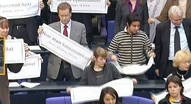 aus der Sitzung: die Linken erinnerten im Bundest-ag an Opfer vom 4.0.2009