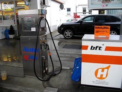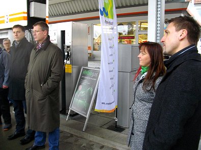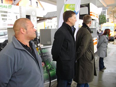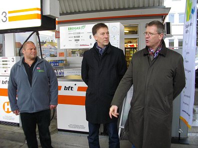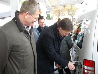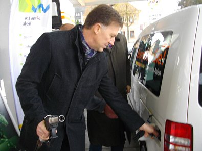 Liter zu betanken. Links: Stadtwerkedirektor Cord Müller.