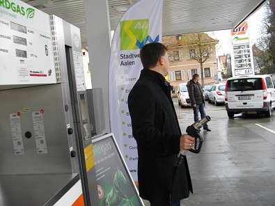 selbst das erste Erdgasfahrzeug des Stadtwerke-Konvois für 88 Cent je