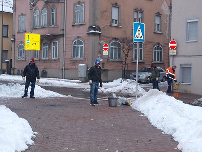 Böllern aus der Silvesternacht zusammen zukehren. In Aalen wird traditionell