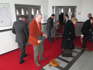 Artig zog dann Ob Rentschler vor dem Einganz zum Herzen der Moschee seine