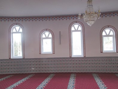 im Herzen der Moschee mit dem nicht brennbaren roten u. glanzvollen Teppich.