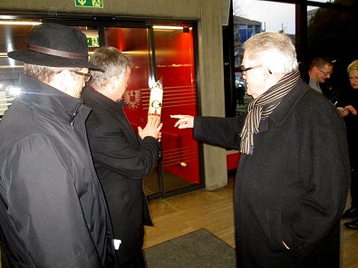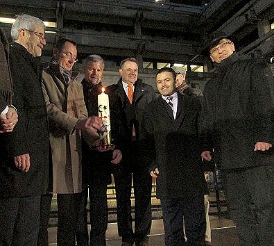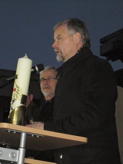 Angstenberger nach zweima-ligem Anzünden das "Friedenslicht" öffentlich an