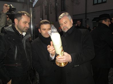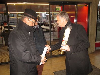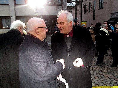 Dekan Dr. Pius Angstenberger mit dem "Friedenslicht", BM Fehrenbacher,