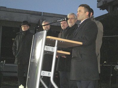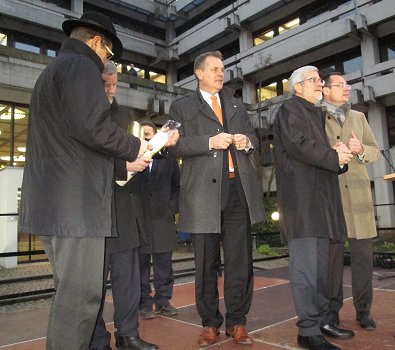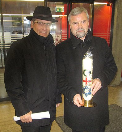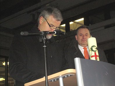 Friedenskerze im Vordergrund (links). Rechts Ex.Landrat Dr. Wabro und Ex-BM