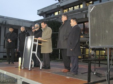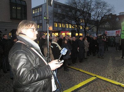 der Friedenskundgebung vor dem Aalener Rathaus teil und hat in seiner Rede