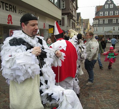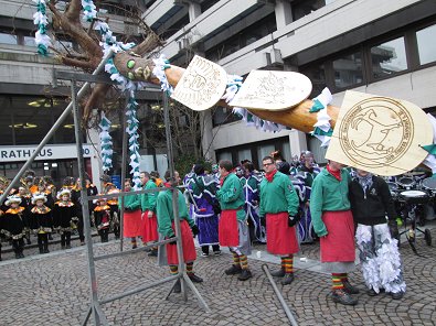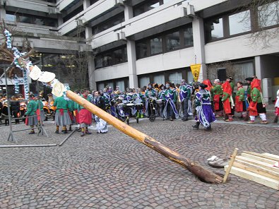dem Aufstellen des neun Meter hohen "Narrenbaumes" begonnen. Dabei fiel auf,