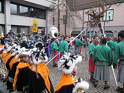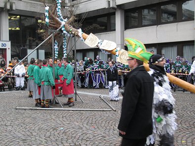 Bilder vom "Sternmarsch" in Aalener City u. vom Auf-stellen des Zunftbaumes.