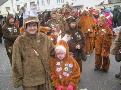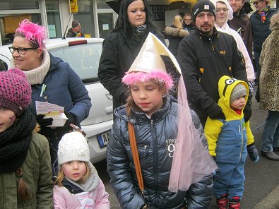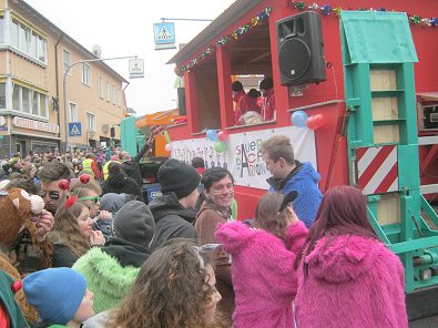 durch den ganzen Stadtteil als sich der Faschings-Umzug 2017 in Bewegung