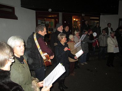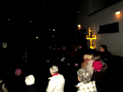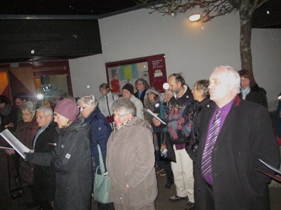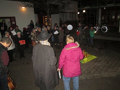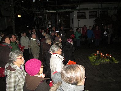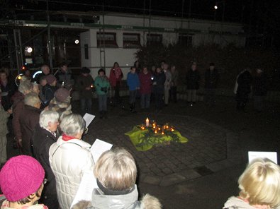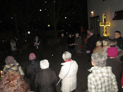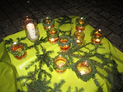 dem Ökumenischen Gemeindezentrum hunderte von Lichtern im Freien und als