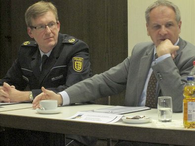 Volker Schindler (rechts) als Stellvertreter des Polizeipräsidenten neben