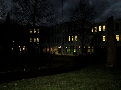 Polizeipräsidium um 17 Uhr bei Dunkelheit am 08.12. 2014
