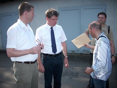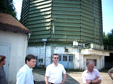 Führungsriege der Stadtwerke vor dem Gaskessel dessen Ende schon nächste