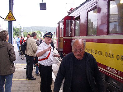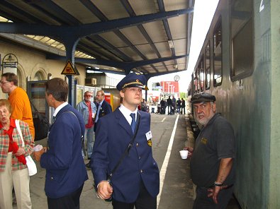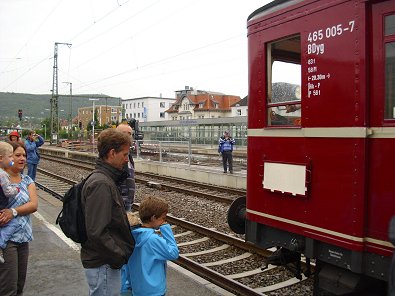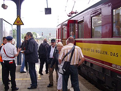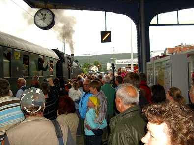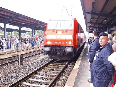 der Zug feierlich empfangen. Am Endbahnhof in Aalen erwartete die Gäste und