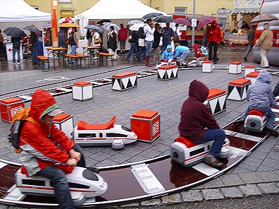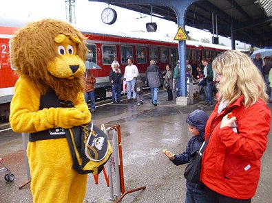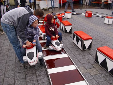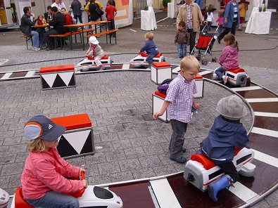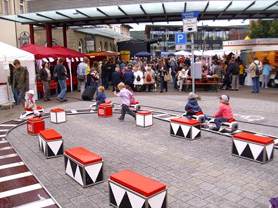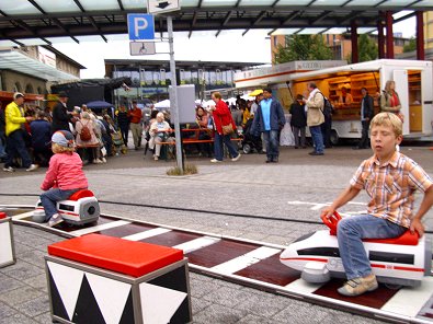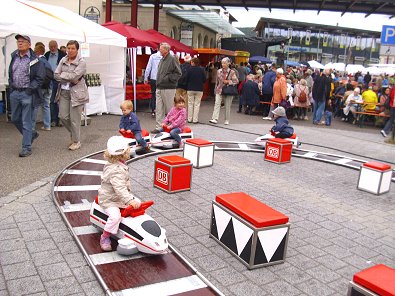 durften auch die Kleinen auf dem Bahnhofvorplatz selbst Zugführer spielen