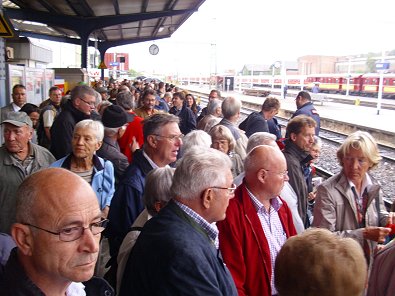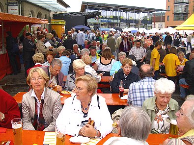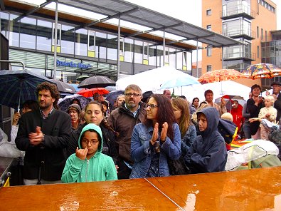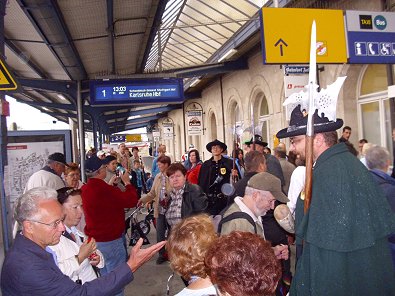 Landkreise auf dem Bahnhofvorplatz die Festgäste.