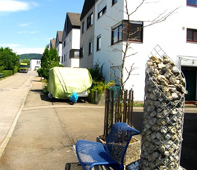 Entdeckt heute in den Schlatäckern: Steinkunst und Sitz.