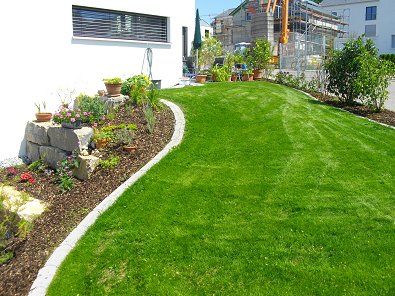Gärten und Rasen auch ausnahmslos im neuen Baugebiet