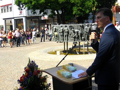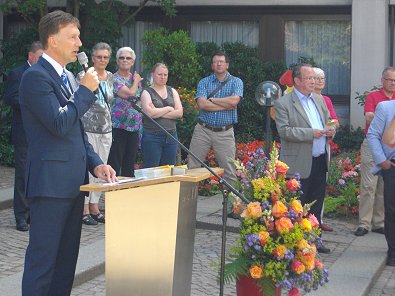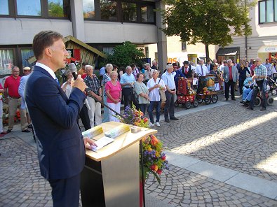 wieder sehr feierlich von OB Gerlach vor dem Rathaus mitten in einem Meer
