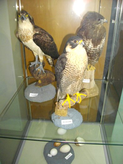 Präparate vom Fischadler u. Wanderfalke waren ausgestopft: