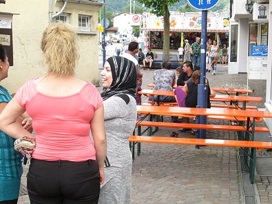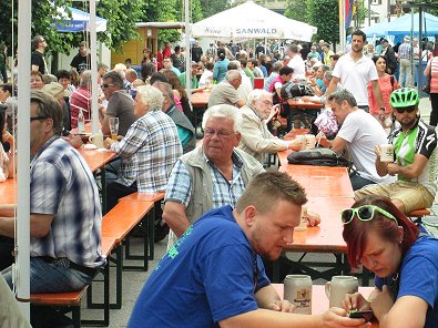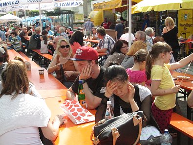 bei der Kirmes auf eigenes Bier.