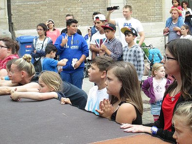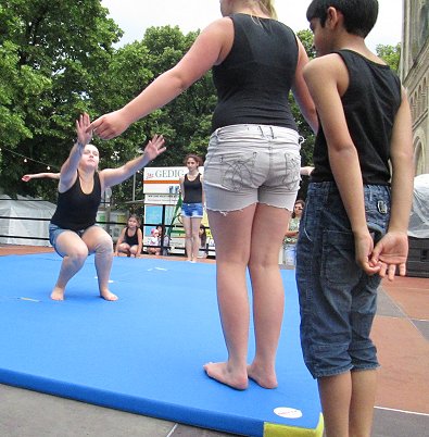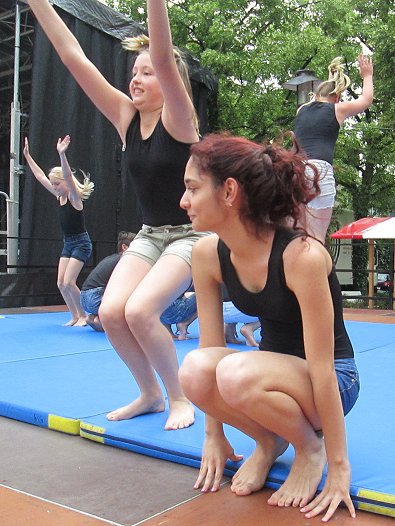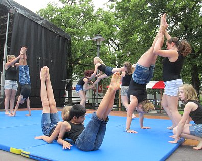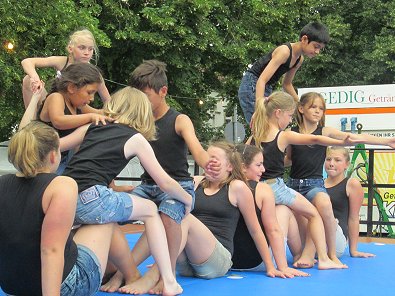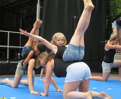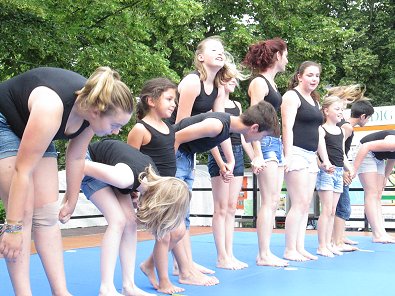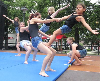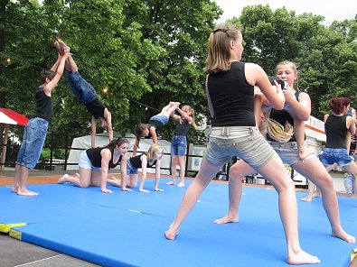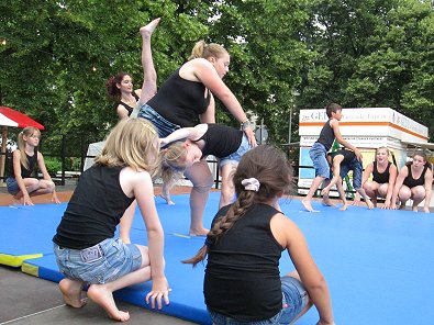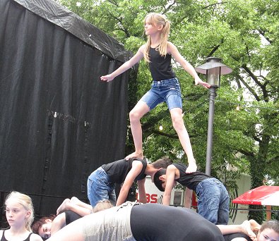 den Akrobaten-Aktionen im Sturm unter tosendem Publikums-Beifall holten und