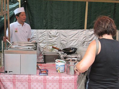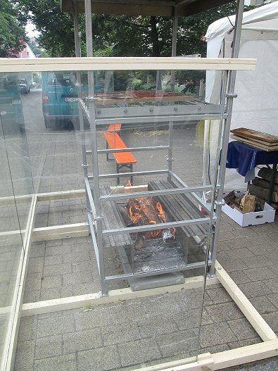 hinter der Kirche: Grillen unter Glas.