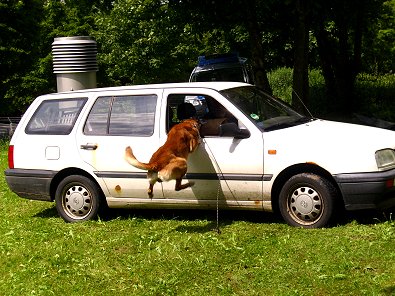 meine Hündin Aquilla dann ganz traurig an und will mit, aber da muss man