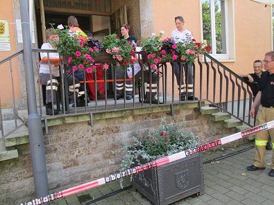 das DRK - das sich auf der Treppe des Bezirksamtes postiert hatte - hatte