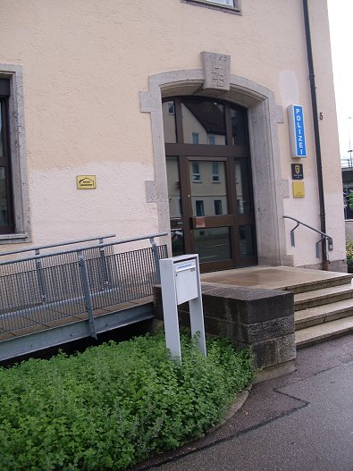 wieder vor dem Eingang des Polizeireviers in Aalen.