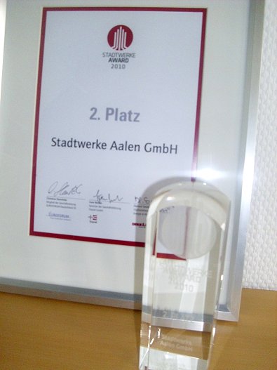 2010",den die Stadtwerke Aalen auf dem 2. Platz nach den Stadtwerke