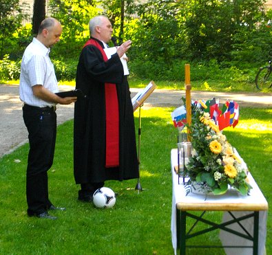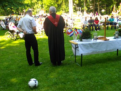 Elfmeter Wettbewerb mitten im Gottesdienst im Aalener Stadtgarten bei einem