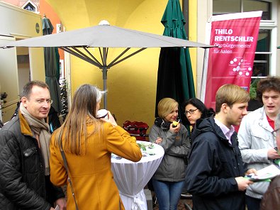 und diskussionsbereit OB-Kandidat Thilo Rentschler auf seinem 1. Weg zu