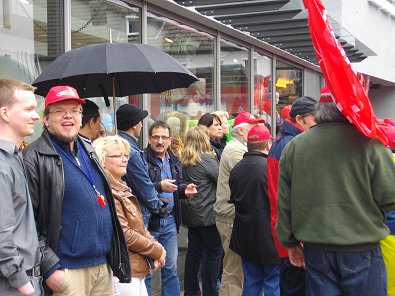 Solidarität und streikbereit: Josef Mischko begrüßte so Kollegen...