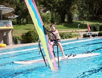 Freibad Spiesel bietet am Pfingst-samstag in einer Ferienaktion surfen an.