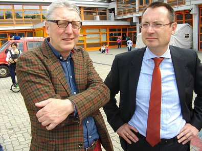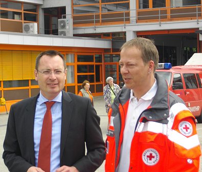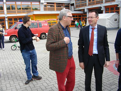 Feuerwehrmänner: BM Fehrenbacher und (rechts) OB Rentschler im