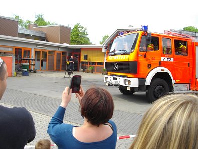 echten Feuerwehrauto mit Blaulicht u. Übungen begeisterten