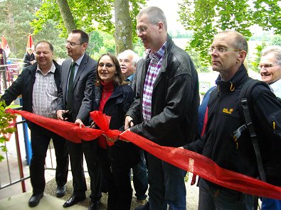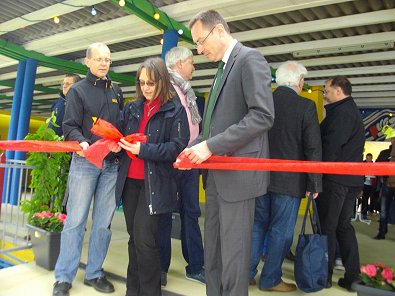 Schnell war für die AIZ das Foto vom Band durchschneiden gema-cht und der OB