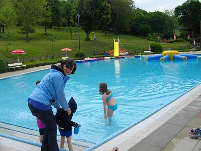 Wasser, obwohl es nur zehn Grad Außentemperatur gab, "aber das ganze Freibad