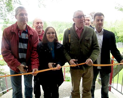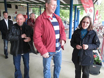 Ortsvorsteherin Andrea Hatam (mitte) und Bürgermeister Fehrenbacher Freibad