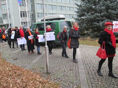 Demonstranten vor dem Landratsamt: M. Werner (links).