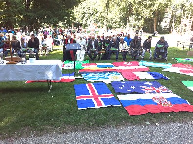 gerne die 32 Fahnen auspackten und diese während der Predigt freudig