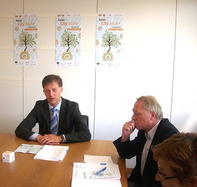 Schurig, und Kreisgärtnermeister Lessle) bei der Pressekonferenz machte