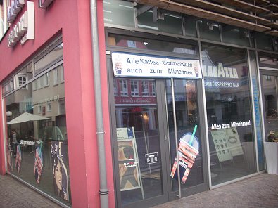 des Medienhauses links Kaffee und rechts ein Geschäft: Leser sind