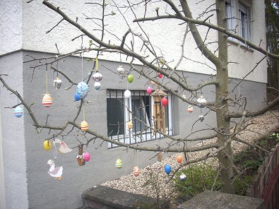 gegenüber den Baumfrevlern: Ostereier schmücken Äste.