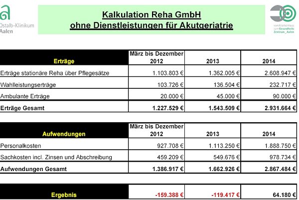 vollendete Tatsachen zu stellen und zwar in Sachen Reha in Aalen: Landrat