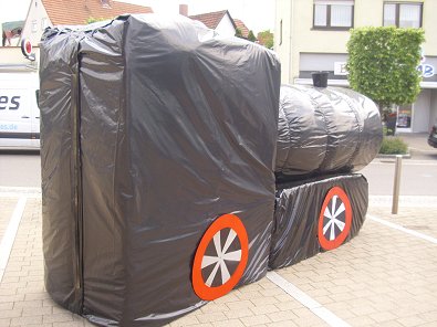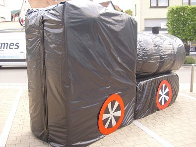 Remsbahn-Lok haben die Jugendlichen Landwirte nur aus Strohballen und Plane