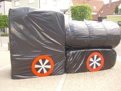 was da schon alles steht: Die "Eisenbahn" steht schon auf dem Platz vor der